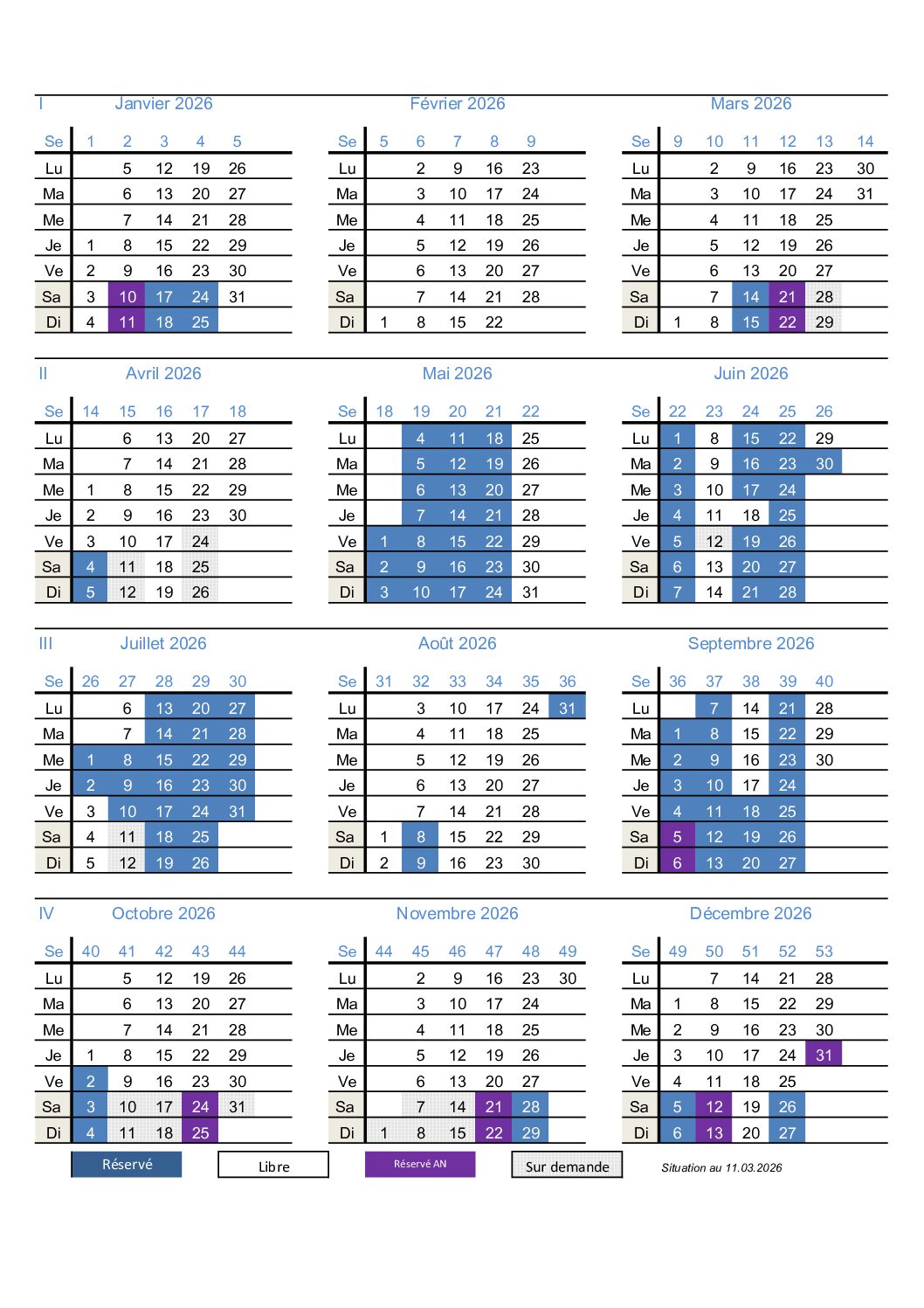 Valable également du vendredi au dimanche pour sociétés à but non lucratif (écoles, camps sportifs, scouts, fanfares, etc.)